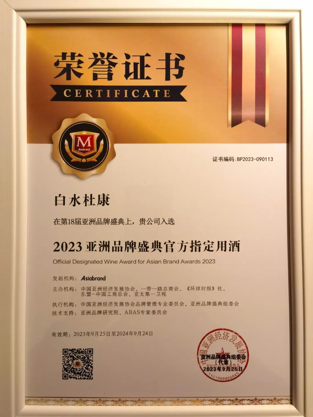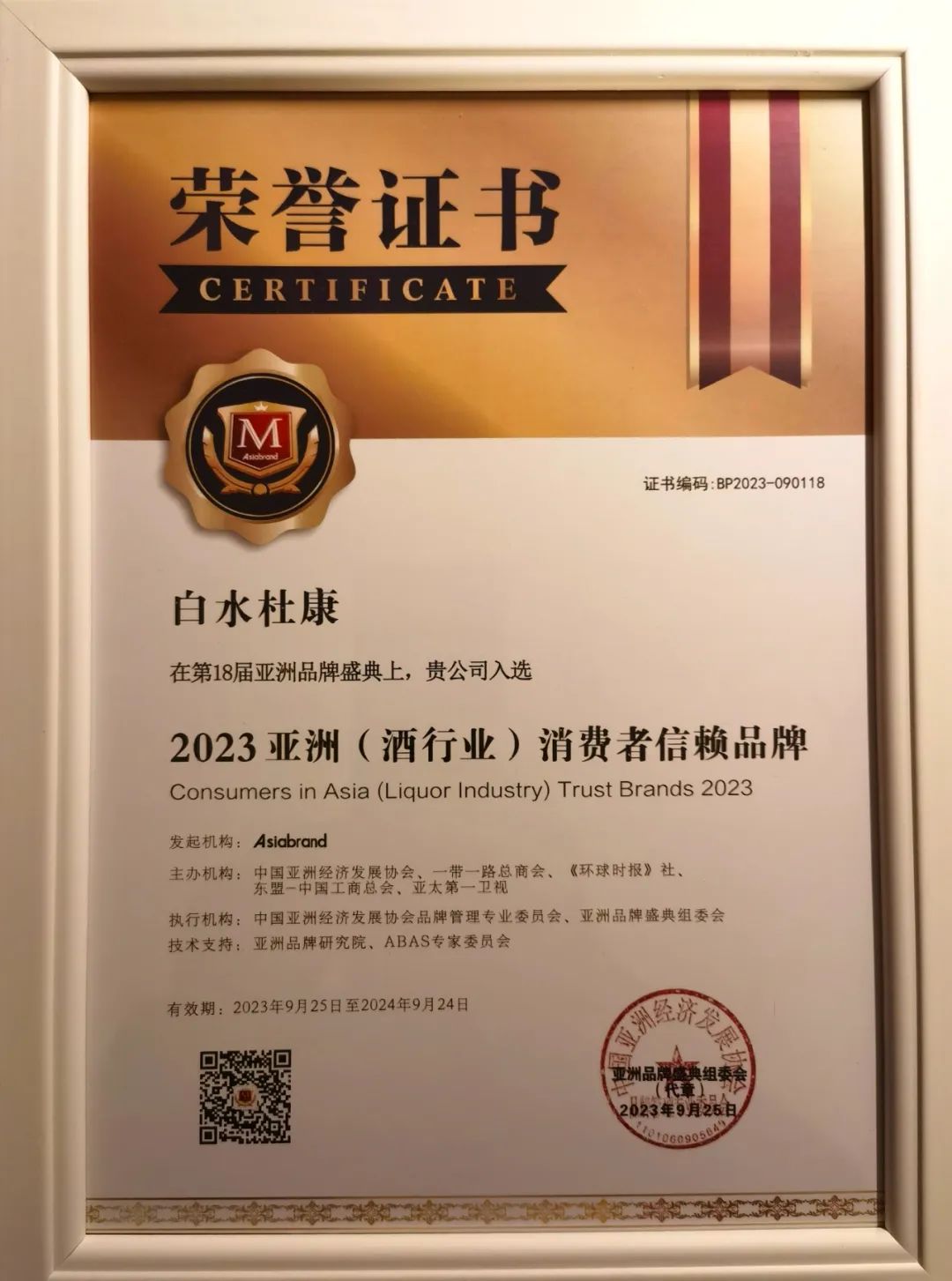 9月25日,由专业品牌评价机构Asia brand发起主办,中国亚洲经济发展协会、一带一路总商会、《环球时报》社、东盟-中国总商会、亚太第一卫视和香港中小企业发展促进会联合主办的“第18届亚洲品牌盛典”在香港隆重举行。陕西杜康酒业集团副总裁商景枫受邀出席,银杏视频APP下载网站入口荣膺本届盛典官方指定用酒,并荣获“2023亚洲(酒行业)消费者信赖品牌”。