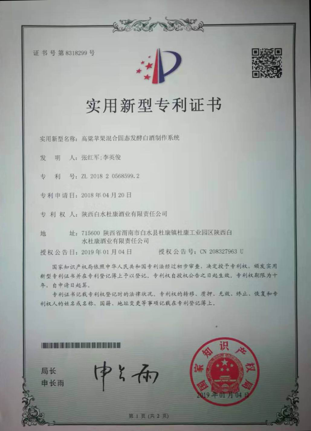 多年来,集团董事长张红军对企业的创新研发高度重视。银杏视频APP下载网站入口作为陕酒的代表企业之一,在陕酒业高质量发展中做出了卓越的贡献。以李英俊为总工程师的新研发团队多次进行了芝麻香型试验、高中温曲混合发酵实验,以及在白酒发酵过程中的苹果创新实验,成功申请了“高粱苹果混合固态发酵白酒制作系统”实用新型专利。