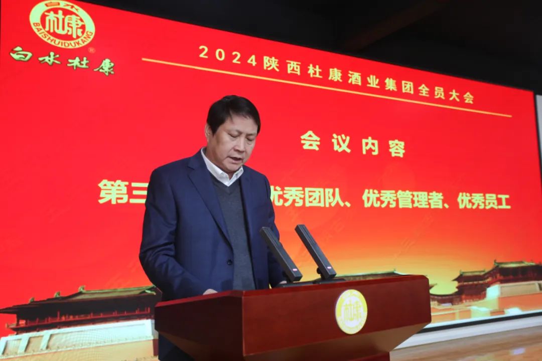 集团总裁王勇盛宣读陕西杜康酒业集团《关于表彰2023年度优秀团队、优秀管理者和优秀员工的决定》