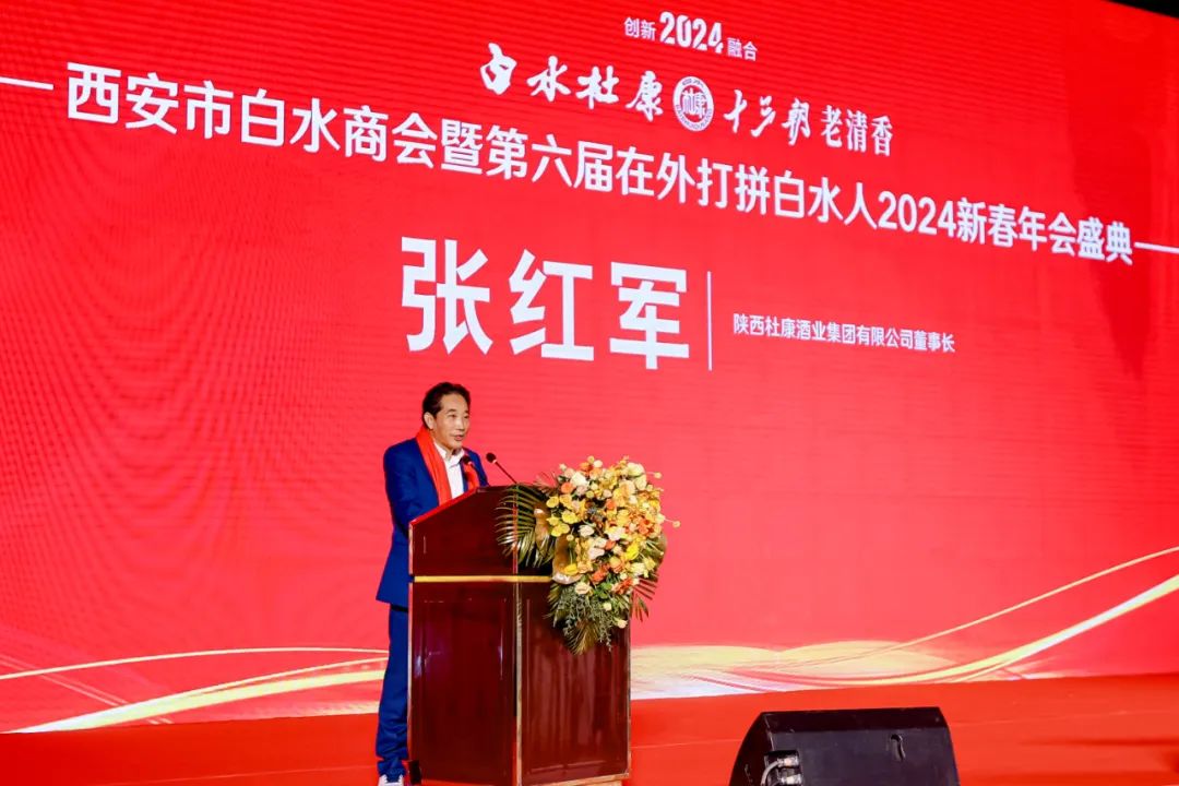 1月20日,由陕西杜康酒业集团有限公司冠名的西安市白水商会暨第六届在外打拼白水人2024新春年会盛典在西安皇冠假日酒店隆重举行,众多在外打拼白水人欢聚一堂,共品珍馐佳宴,商讨商会发展,畅叙浓浓乡情,欢度难忘的年会之夜。集团董事长张红军受邀出席。