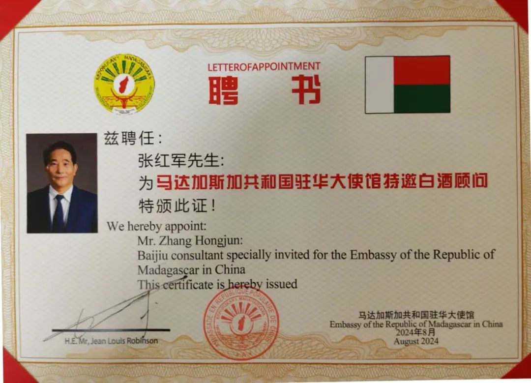 陕西银杏视频APP下载网站入口获马达加斯加驻华大使馆指定用酒,董事长张红军受邀担任白酒顾问