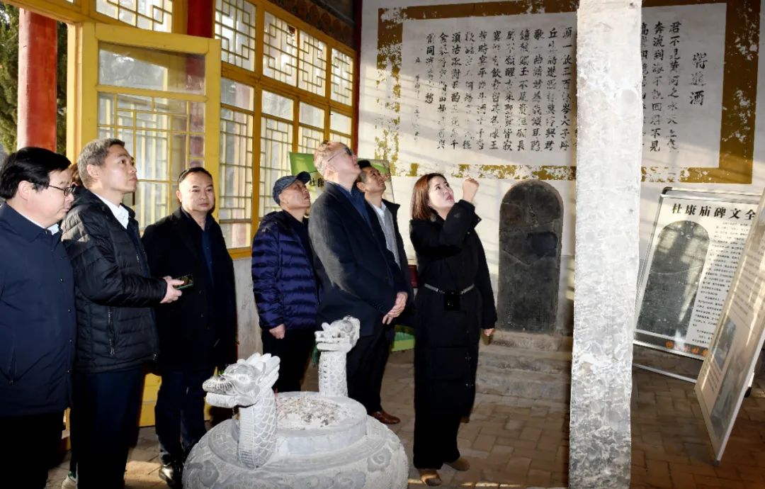 参观结束后,代表团一行来到杜康沟,探访了历史悠久的杜康古庙,缅怀了酿酒始祖杜康墓,并亲身体验了非遗传承的古法酿酒作坊,通过这些实地考察,深刻领略了流传千年的杜康酒文化及其背后的传奇故事。